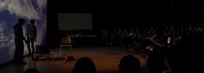 We collaborated to design a scenography that would complement the narrative, the space, and the available equipment for the performance. I was responsible for mapping the surfaces and managing the content deployment at specific cues during the shows. It was such a rewarding experience.